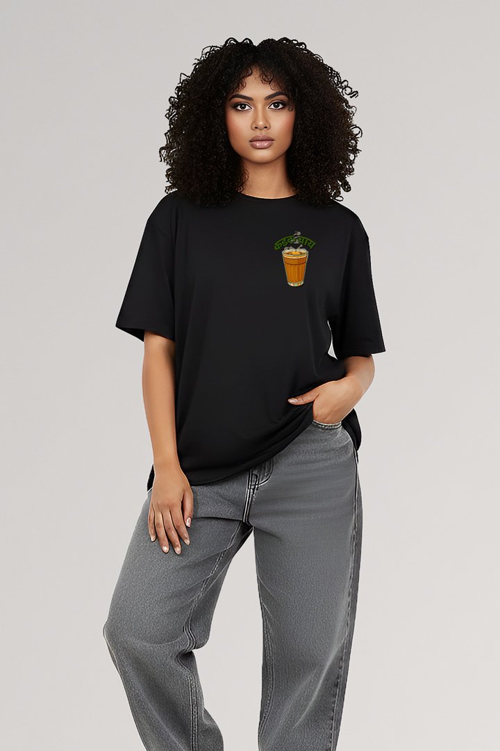 Women’s Jet Black Chai I Oversized Printed T-Shirt